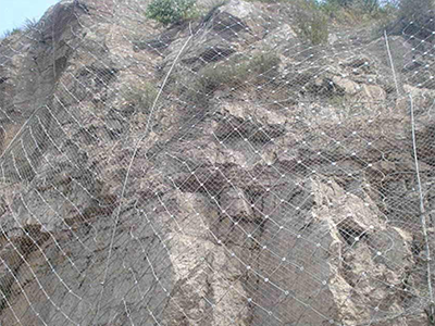 开口式帘式网是由落石拦截收集系统(功能与被动防护网相同)和落石引导控制系统(功能与覆盖式帘式网相同)组成。落石拦截收集系统位于整个系统的上部,用钢质立柱支撑起一个张开的口袋,用于拦截和收集更高位置坠落的石块,再由相连的帘式网引导落石沿设定好的路线滑落到固定位置,有效避免了传统主被动拦截系统不便清理、易造成二次危害的诸多弊端。张口式帘式网适用于坡度较陡、落石较多、防护面积较大的边坡地形。